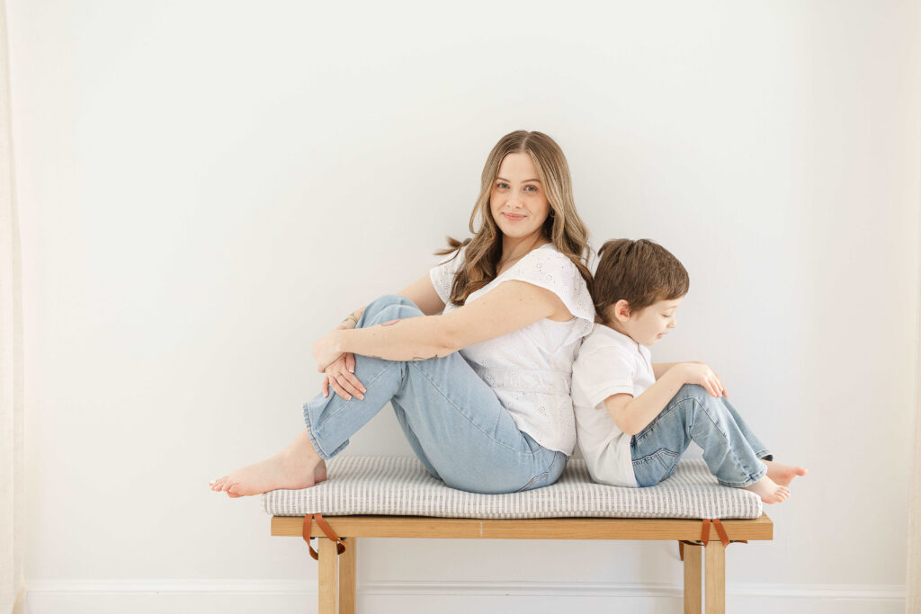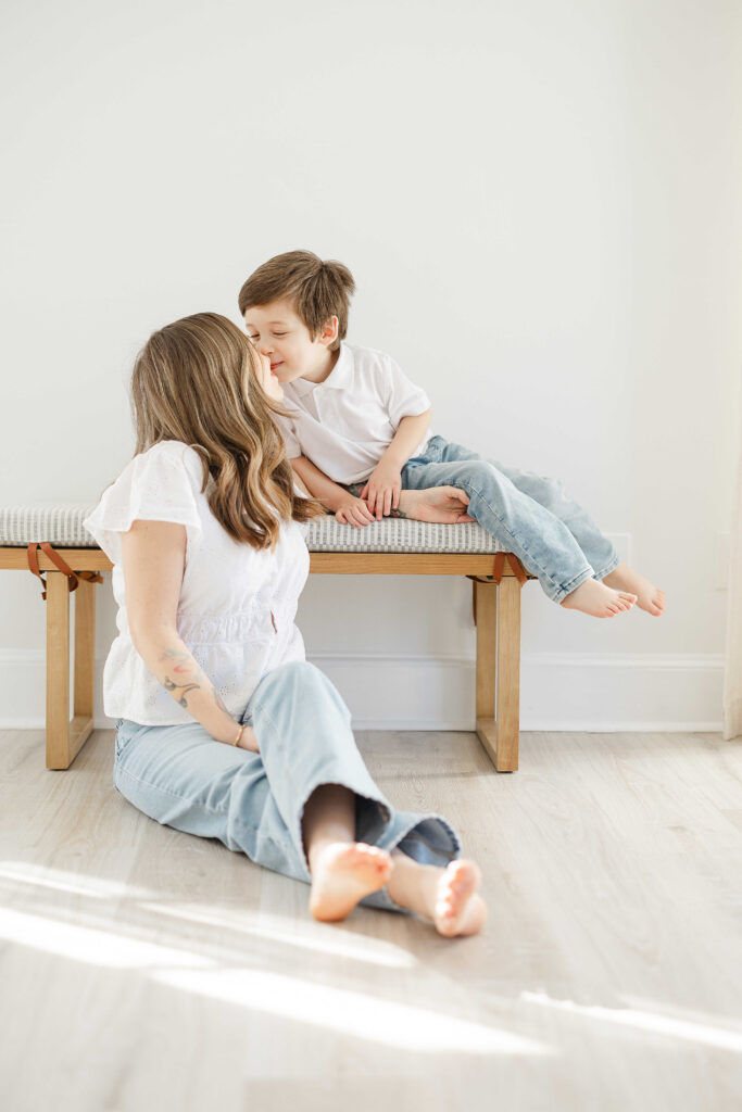 My Mommy and Me sessions in Raleigh are held in my light-filled studio, designed to feel calm, neutral, and timeless.